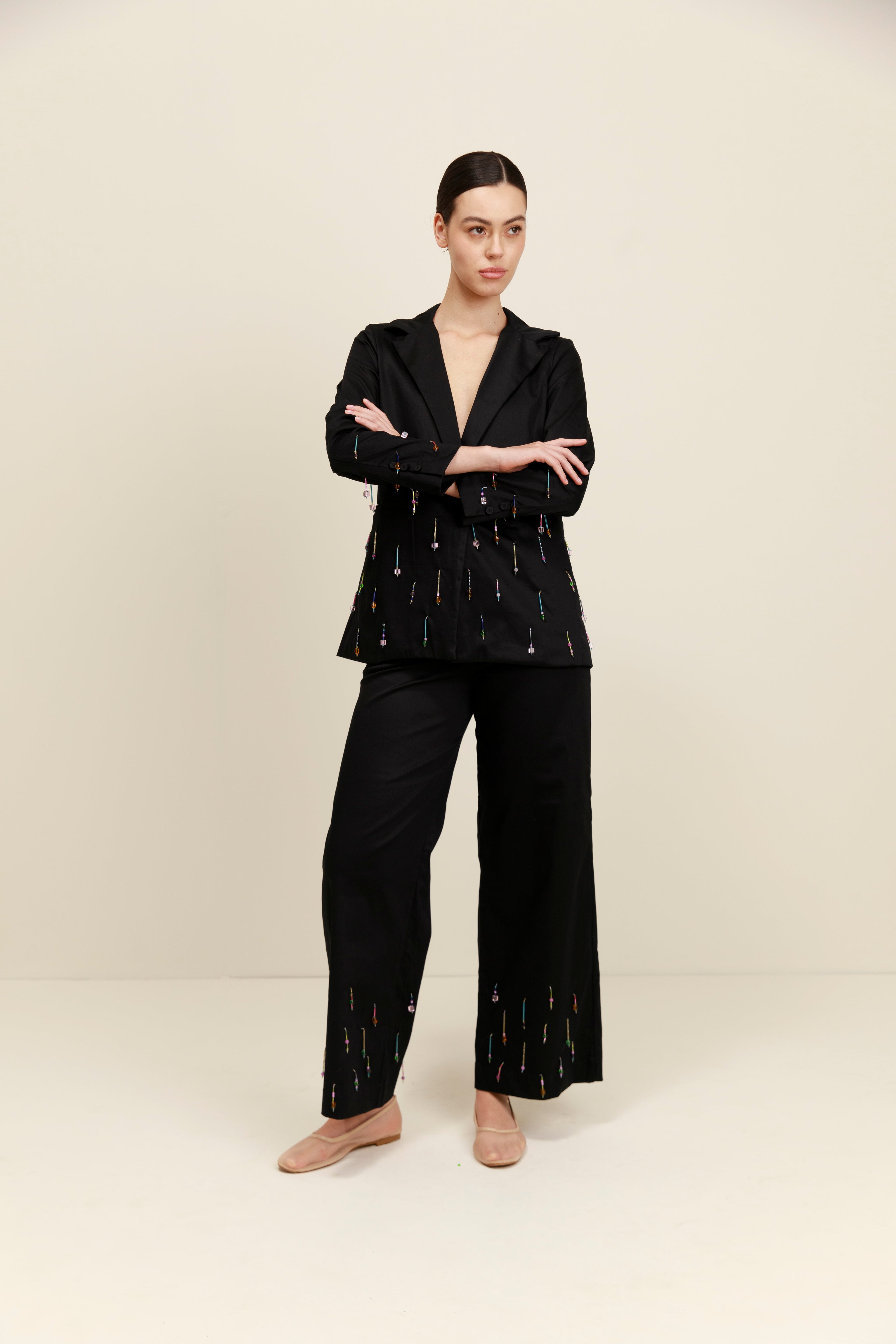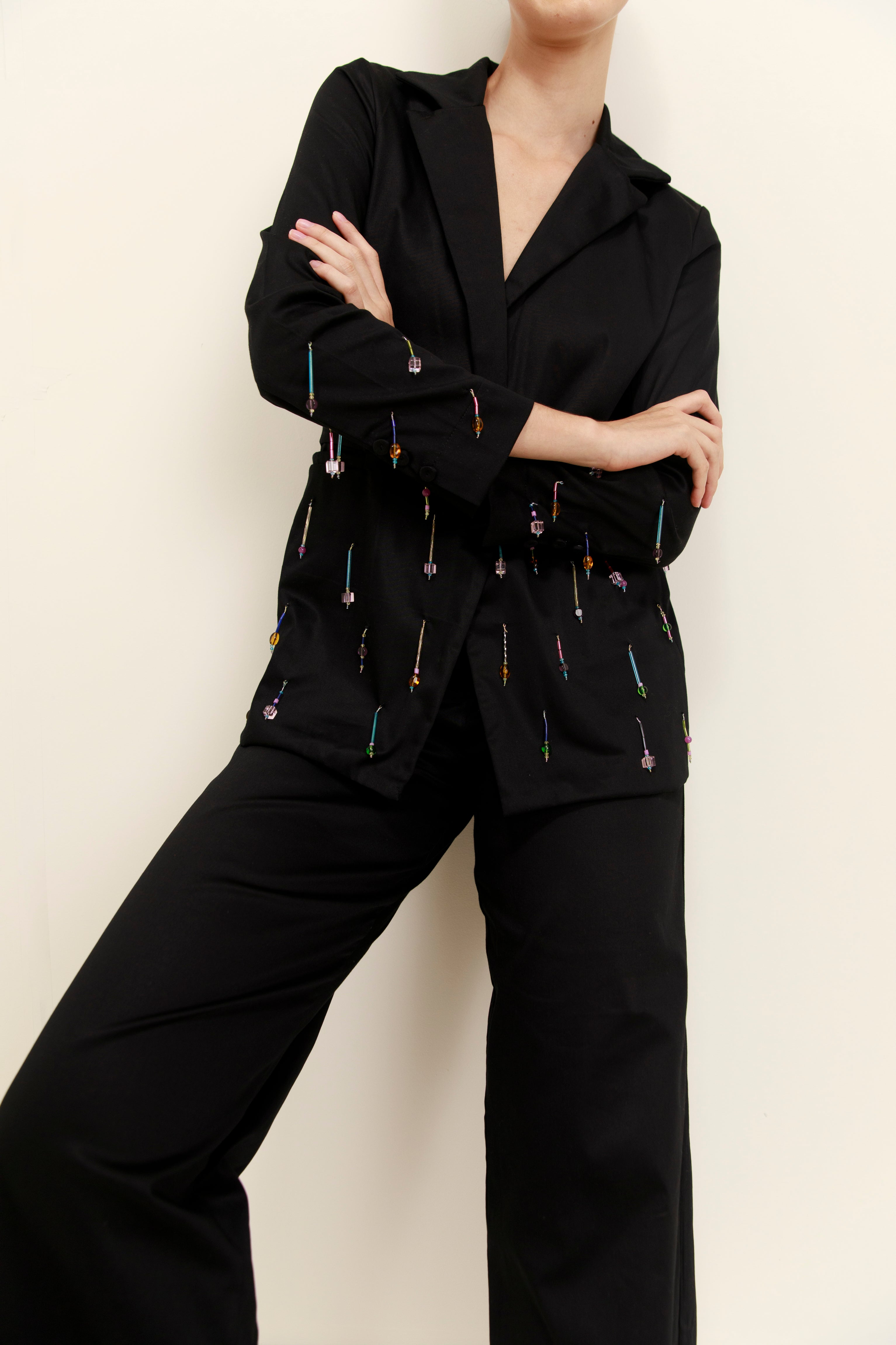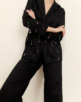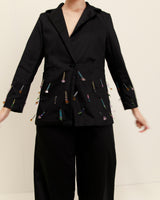 La chaqueta Leo Blazer es un clásico moderno con un toque moderno. Su elegante corte cobra vida gracias a unos inesperados adornos de pedrería, diseñados para destacar.