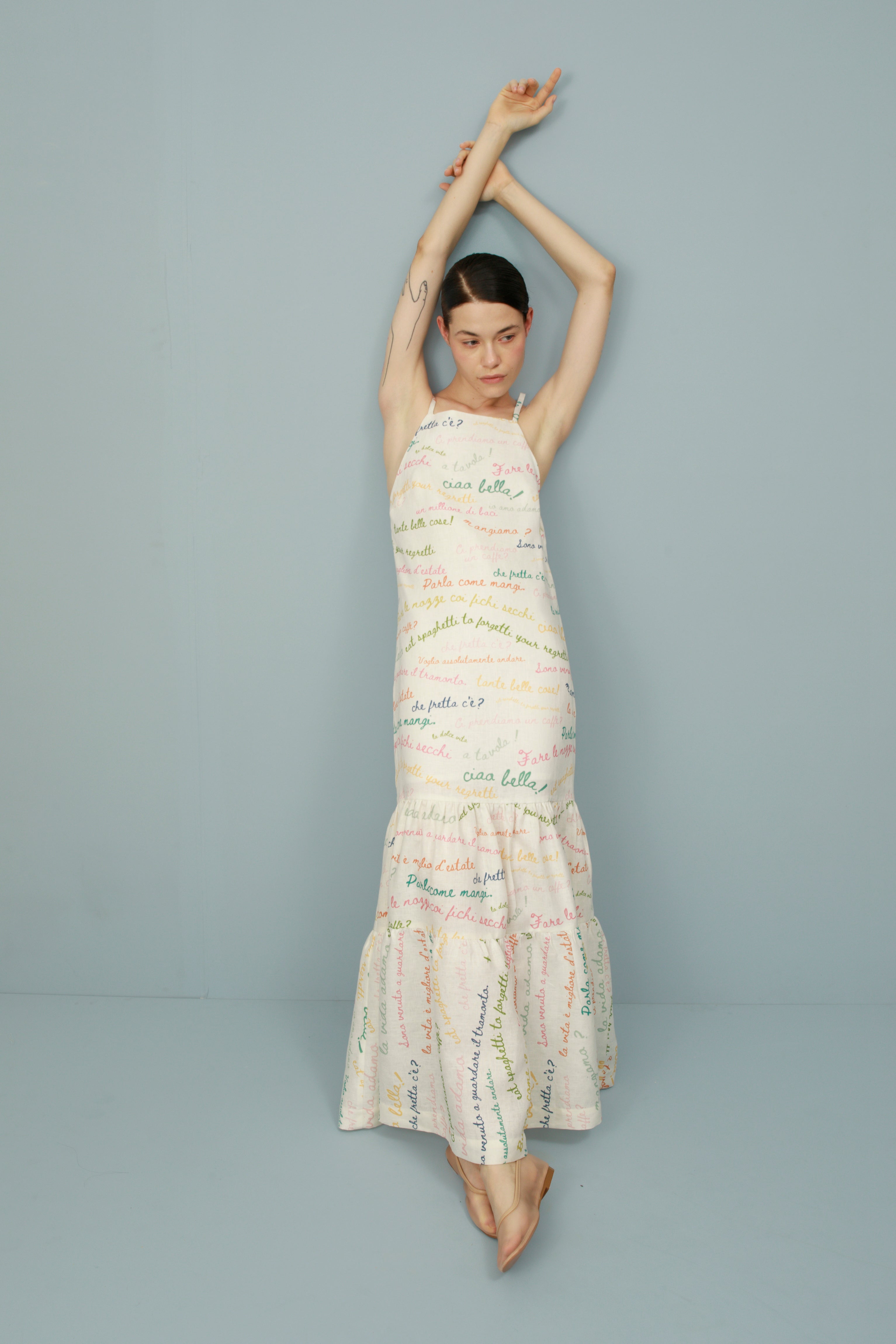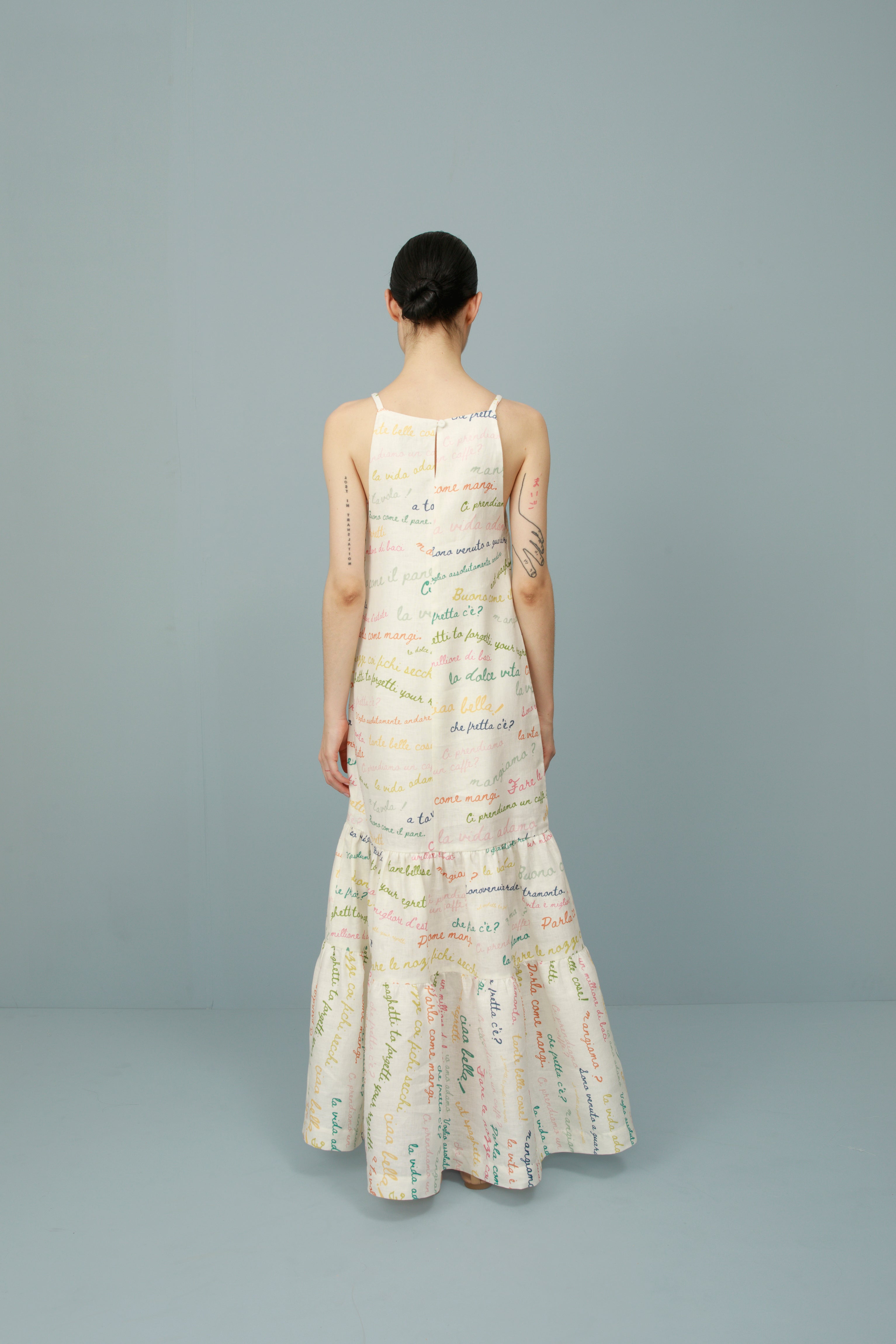 The Pistaccio dress, crafted from linen, exudes freshness and sophistication. Its flowing silhouette and the natural drape of the fabric envelop the body with a feeling of freedom, perfect for summer days or an outdoor event.